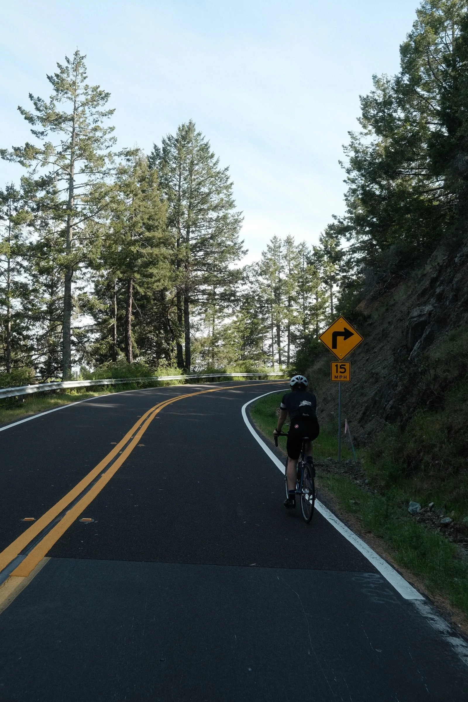 Absolutna klasyka gatunku. Zaczyna się standardowo przez most, Mill Valley i kręcimy aż na sam szczyt Mt Tamalpais. To niekończący się podjazd, ponad 700 metrów przewyższenia w pionie. Z moimi "ciężkimi" przełożeniami oznaczało to jazdę z kadencją 50RPM i testowanie silnej woli.